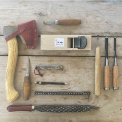 Nous utiliserons uniquement des outils manuels : hachette, couteau droit, couteau croche